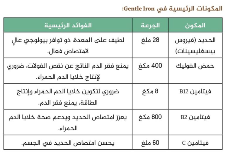 Gentle Iron ، الذي يتميز بتركيبة مبتكرة تضمن امتصاصًًا أفضل للحديد دون التسبب